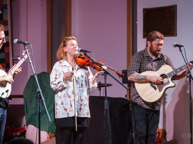 It’s not often that the Downend audience gets up to have a dance (they much prefer a hearty sing) but, tonight, there’s some spirited, untethered whirling. Bolton Lodge is a walking tune that spins with its arms wide, bouncing on the balls of its feet. It has a childlike fizz that sends people up and out of their seats. The Stanford, a tune written for a pub, does it too. Mandolin and fiddle zooming around, pausing, dipping, then joining the steady thrum of the guitar.