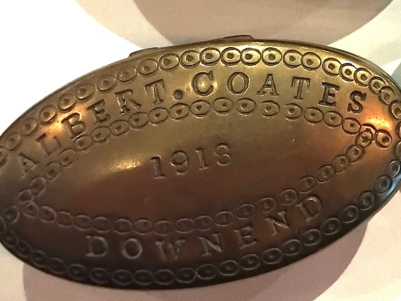 Jenny’s beautiful snuff tins are embossed with the owners’ names, dates and locations: Charles Hibbard, 1903, Frenchay; Fred Garland, 1901, Staple Hill; Albert Coates, 1913, Downend.