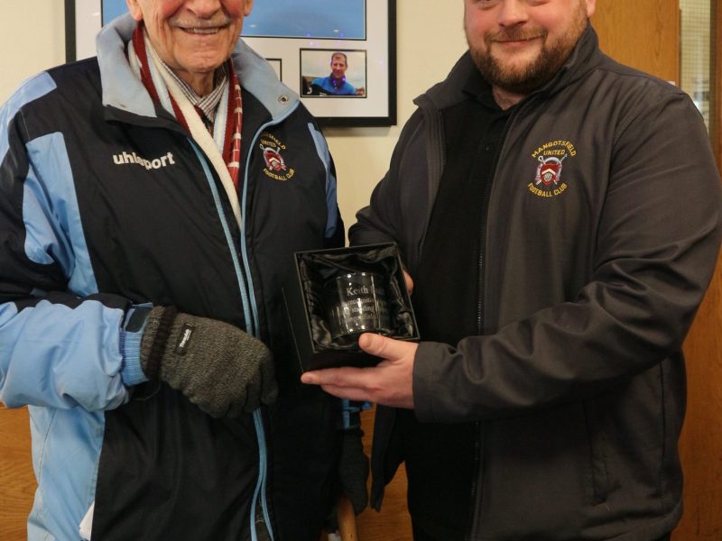“It was an absolute pleasure to present Keith with a small token of thanks for the many years spent supporting Mangotsfield United, home and away.