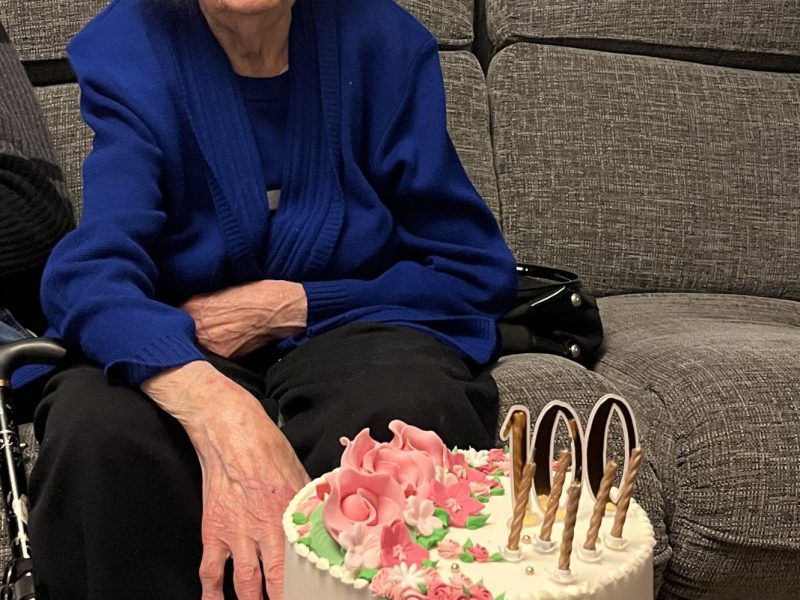 Elizabeth celebrated her 100th birthday surrounded by her children, grandchildren and great-grandchildren, as well as her niece and niece’s husband, who made a surprise visit from their home in Florida to join the celebrations.