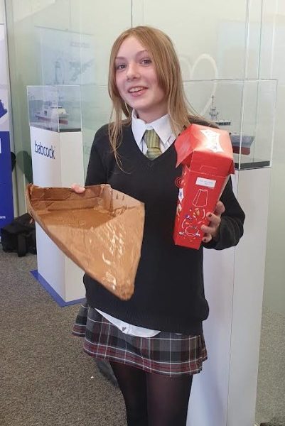 The school’s design and technology department took 29 Year 8 pupils to Babcock International’s Stoke Gifford base for a day of activities including bridge and boat building challenges.
